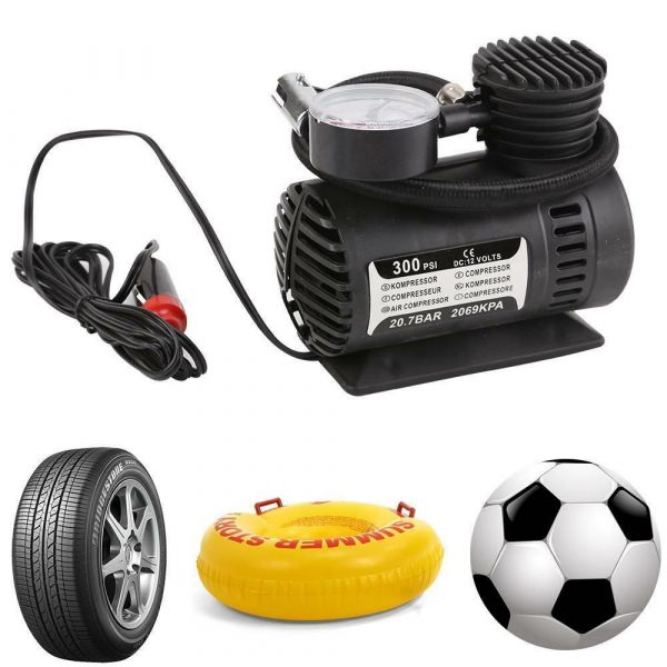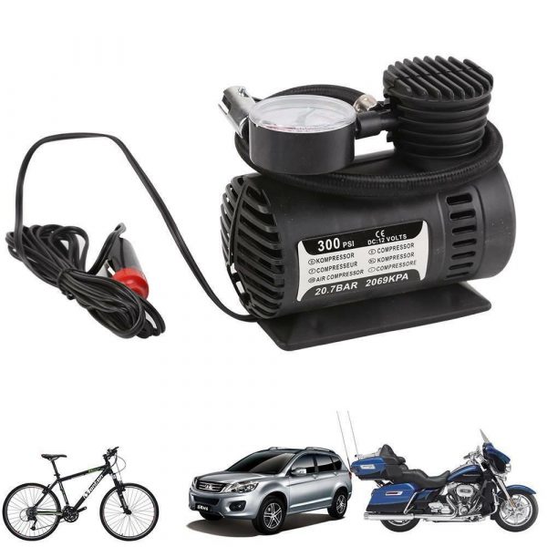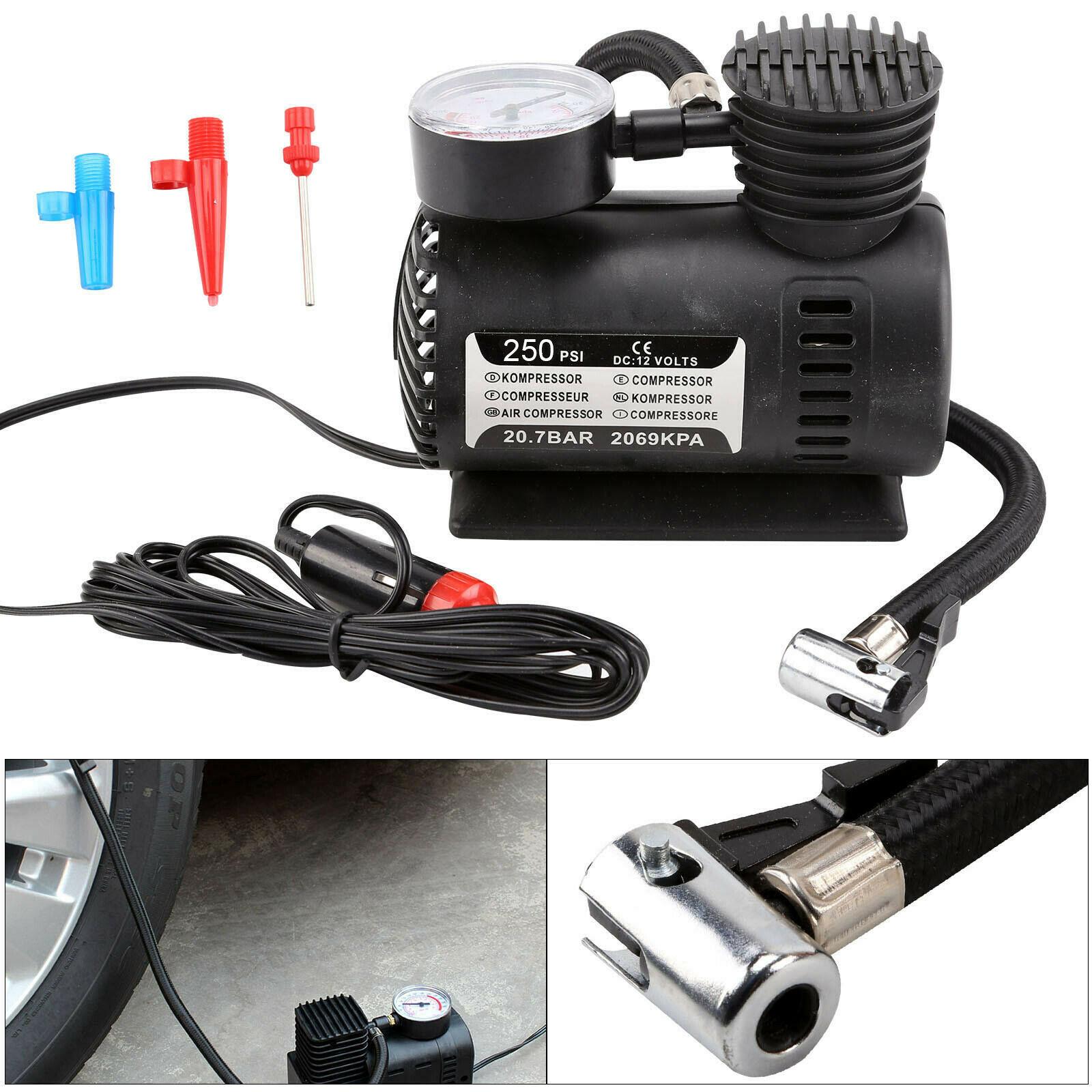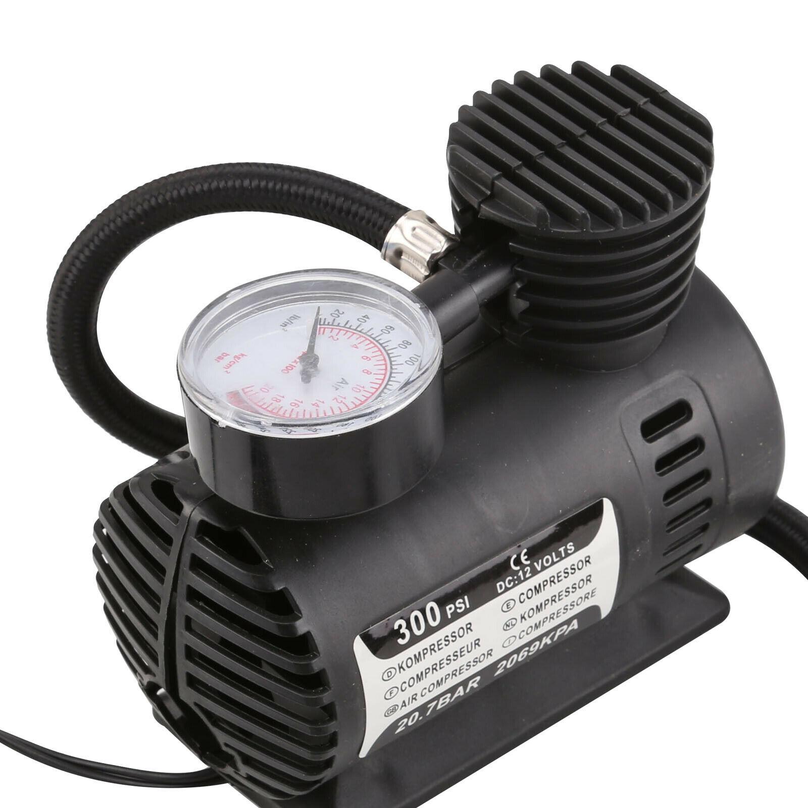 12V Portable Pump Bike Car Van Tyre Inflator Gauge Mini Air Compressor Airhose