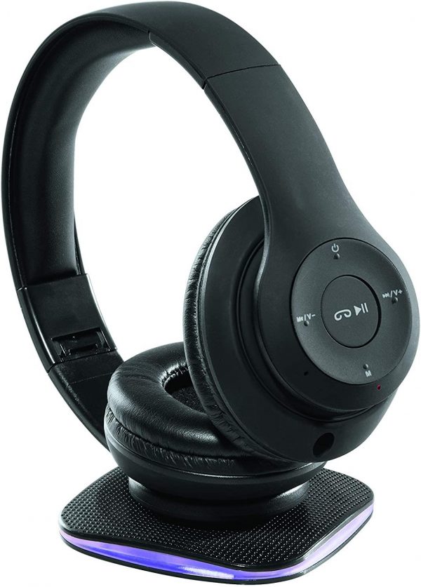 Daewoo Bluetooth Headphones with Built-In Microphone and QI Wireless Charging Pad Included, Wide Variety of Compatible Devices, Phone, PC, Console, 300mAh Battery 4 Hour Life, Side Control Panels