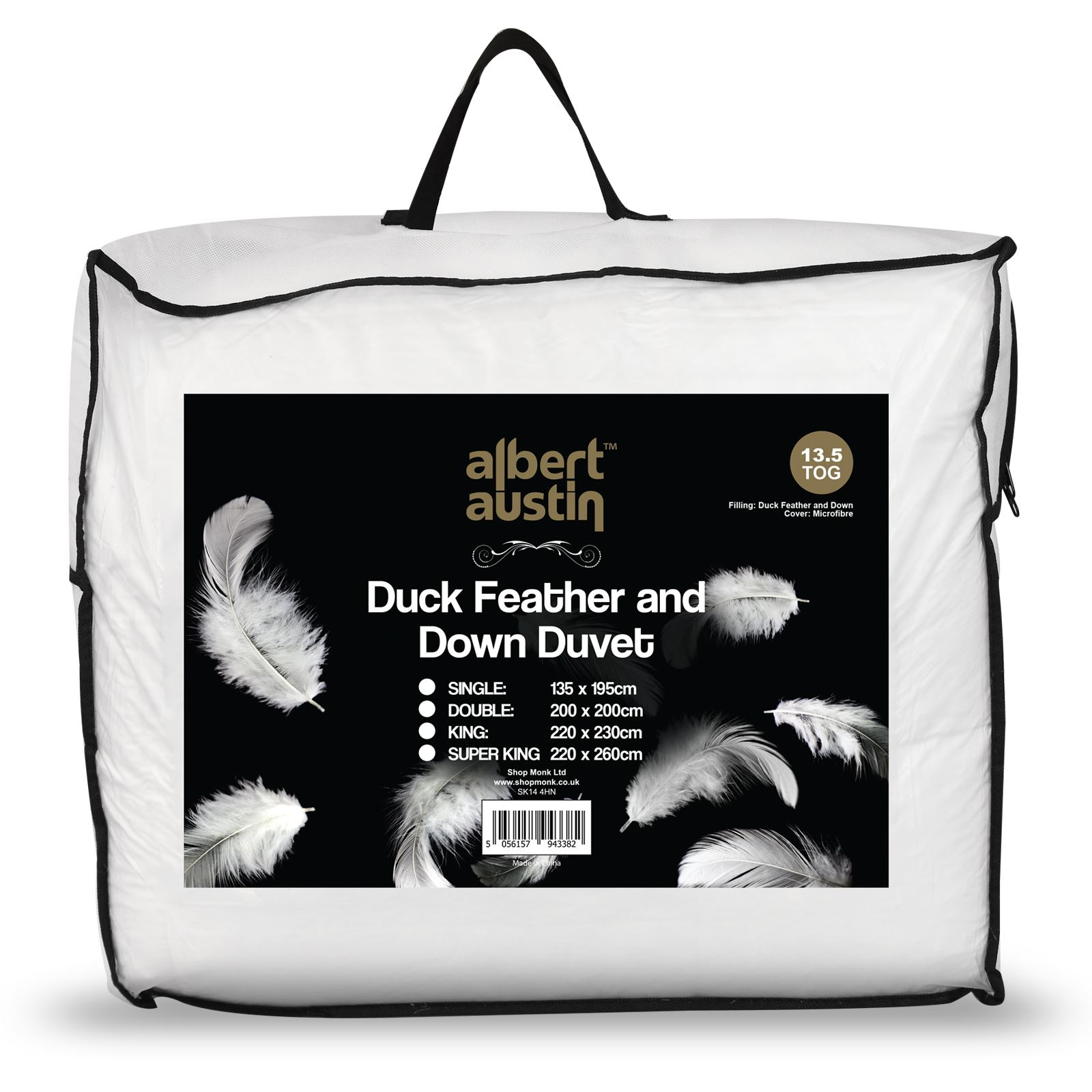 AVAILABLE IN 4 SIZES � The duvet comes in 4 different sizes which include the traditional Single (135cm x 195cm), Double (200cm x 200cm), King (220cm x 230cm), Super King (220cm x 260cm)