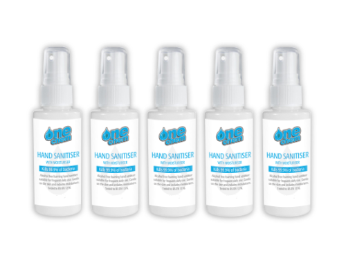 Hand Sanitiser with Moisturiser Travel size 5 x 100ml One Chem Alcohol Free