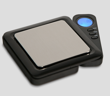 550g Capacity x 0.1g Accuracy (±) Detachable Lid Hideaway Display Stainless Steel Weighing Tray Overload Protection 4 Weighing Modes: g/oz/ozt/dwt 180 sec Auto-off Function