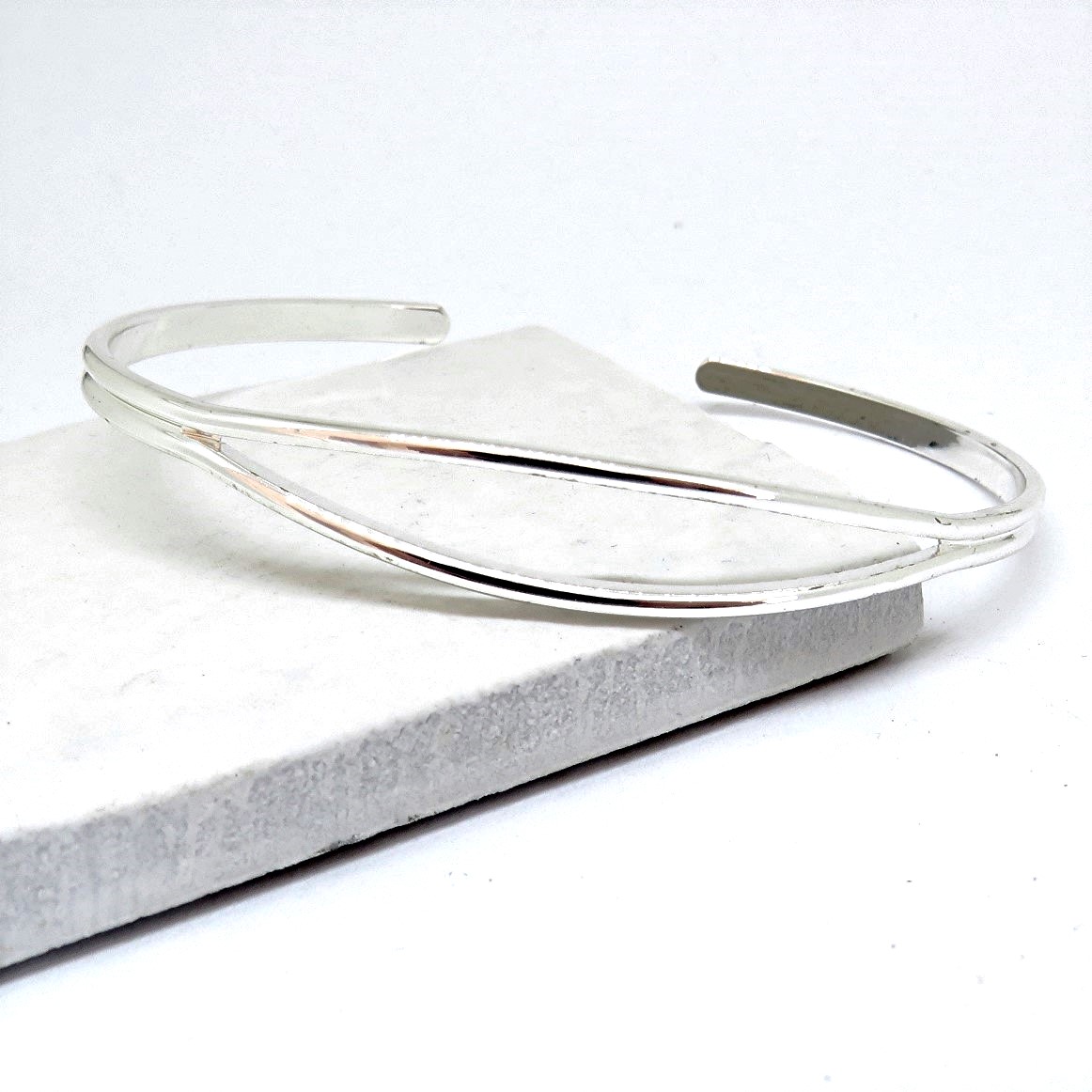 Women’s silver open cuff bangle is plated with sterling silver and is a unique gift for a woman. This simple design is a lovely keepsake gift for a bridesmaids or for her birthday or Christmas.