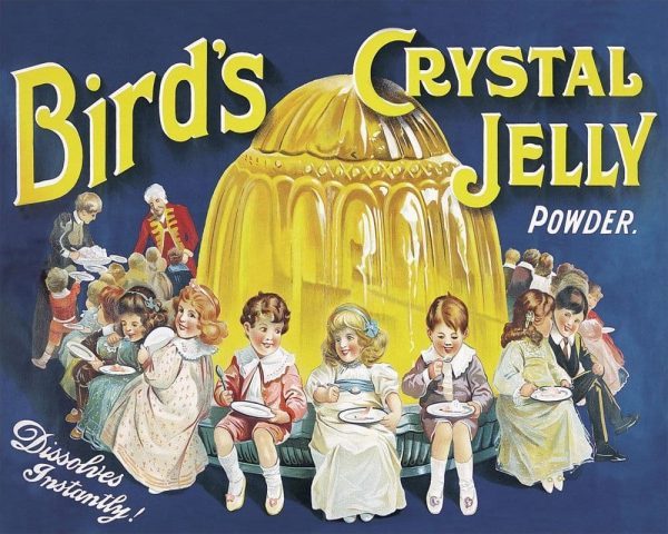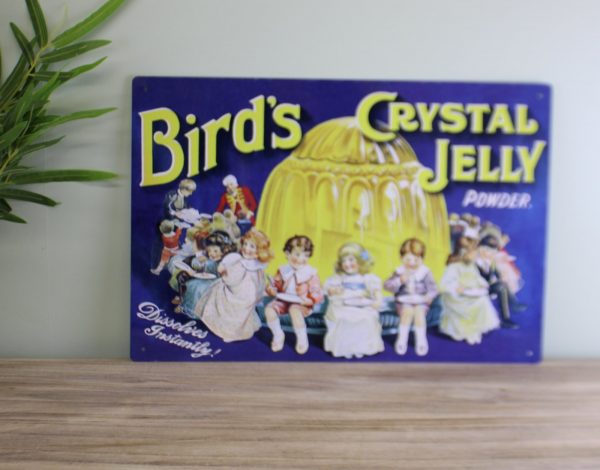 Part of our fantastic new range of reproduction vintage metal signs. Retro Birds Crystal Jelly advertising sign. Made in the UK from aluminium, suitable for use inside or outside. Every poster features 4 drill holes for ease of fixing to the wall. Measurements: 0.1 x 28 x 40cm